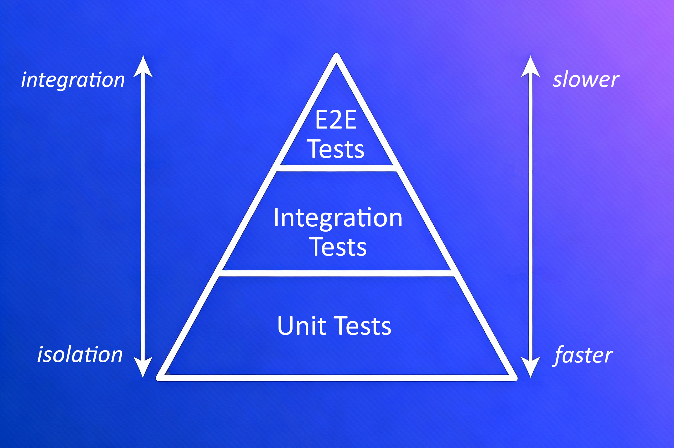 | Base (Unit Tests) | The most numerous tests | Isolated, fastest, fine granularity |